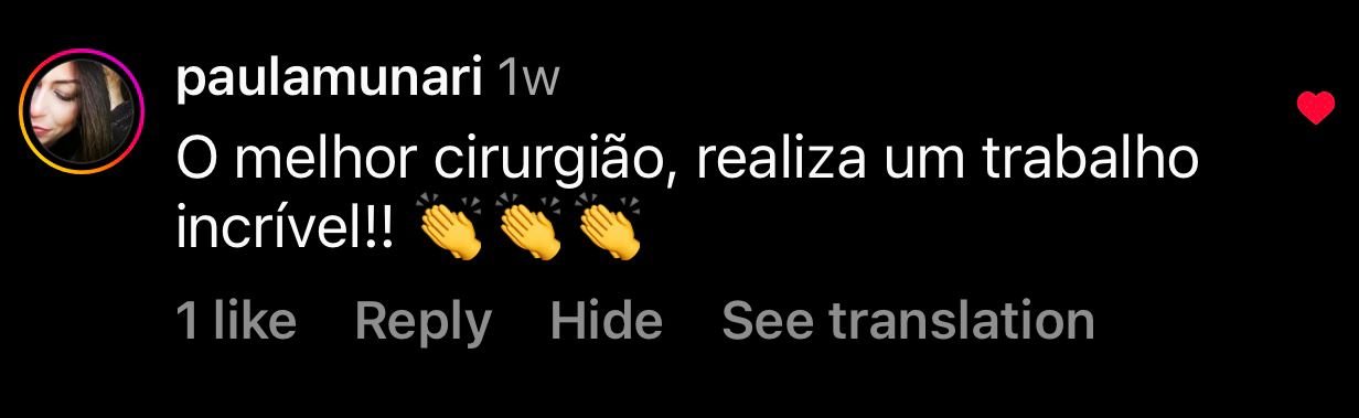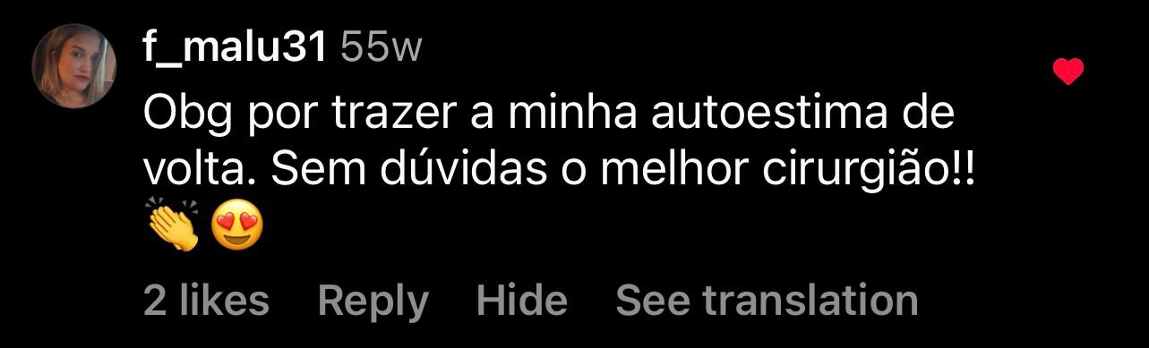 Fiquei muito feliz com o resultado da minha cirurgia. Dr. Felipe é muito atencioso e competente. Só tenho a agradecer.