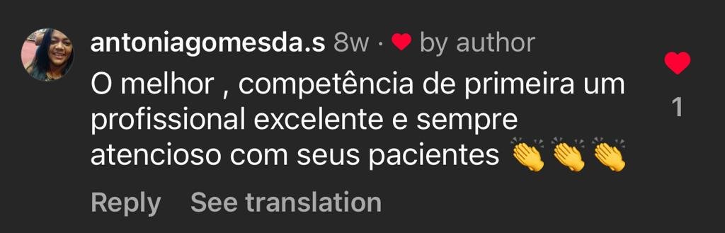 Profissional maravilhoso! Nem remédio para dor eu tomei….. obrigada pelo excelente trabalho que realizou em mim! Muito obrigada