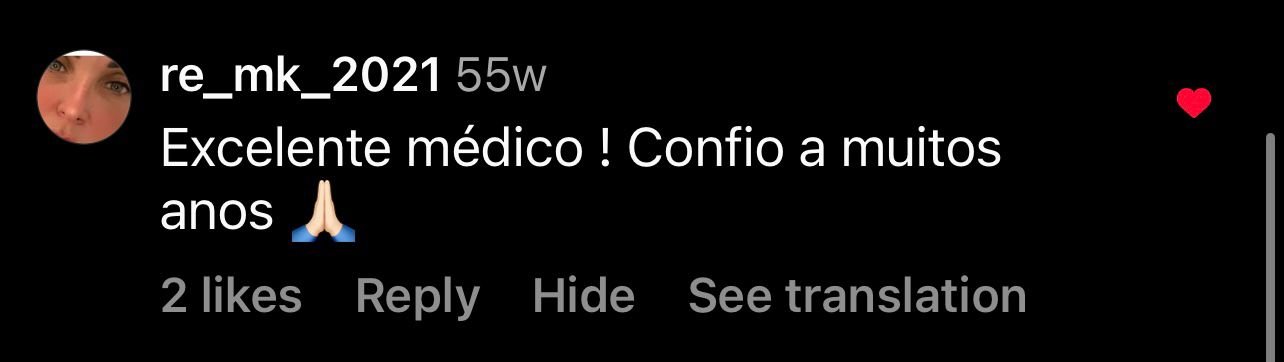 Gostaria de agradecer pelo carinho e dedicação durante todo o procedimento da minha cirurgia e recuperação. Um profissional excepcional e dedicado. Obrigada!!!